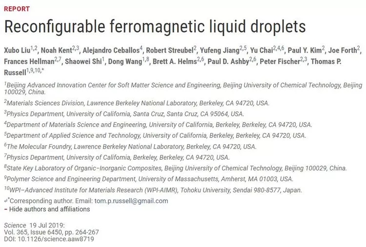 北京化工大學軟物質科學與工程高精尖創新中心近日宣布,該校科研人員與來自美國勞倫斯伯克利國家實驗室等機構的團隊合作,發現一種新型磁性液體,通過控制磁性納米粒子在水油界面的自組裝,最終成功引導鐵磁流體從順磁性轉變成鐵磁性。通俗來講,磁鐵不再一定是堅硬的固體,也可以是流動的液體。