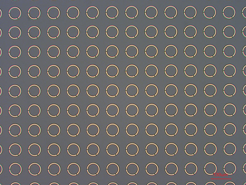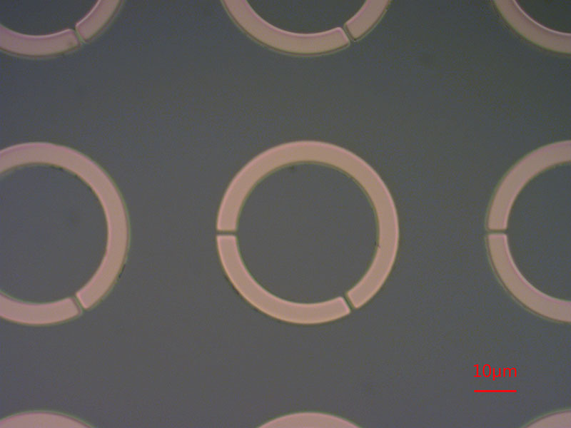 圖中是在PET材料上制作的環(huán)形電極,電極縫隙開口2μm,電極厚度120nm